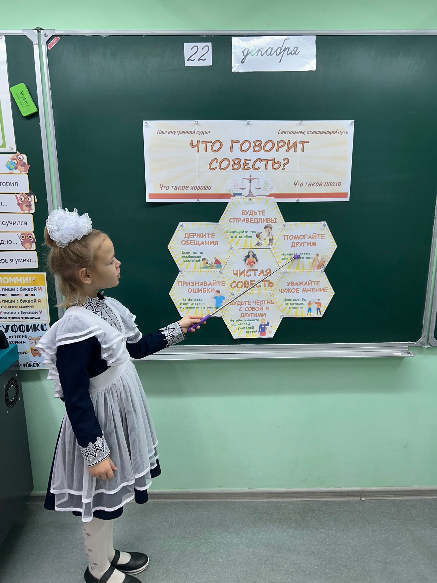 “Did you know that only in the Russian language does the word ‘conscience’ have such a broad and profound meaning? In our language, this concept is linked not only to moral choice but also to duty, honesty, mercy, and sincere repentance,” — reads the lesson script.
