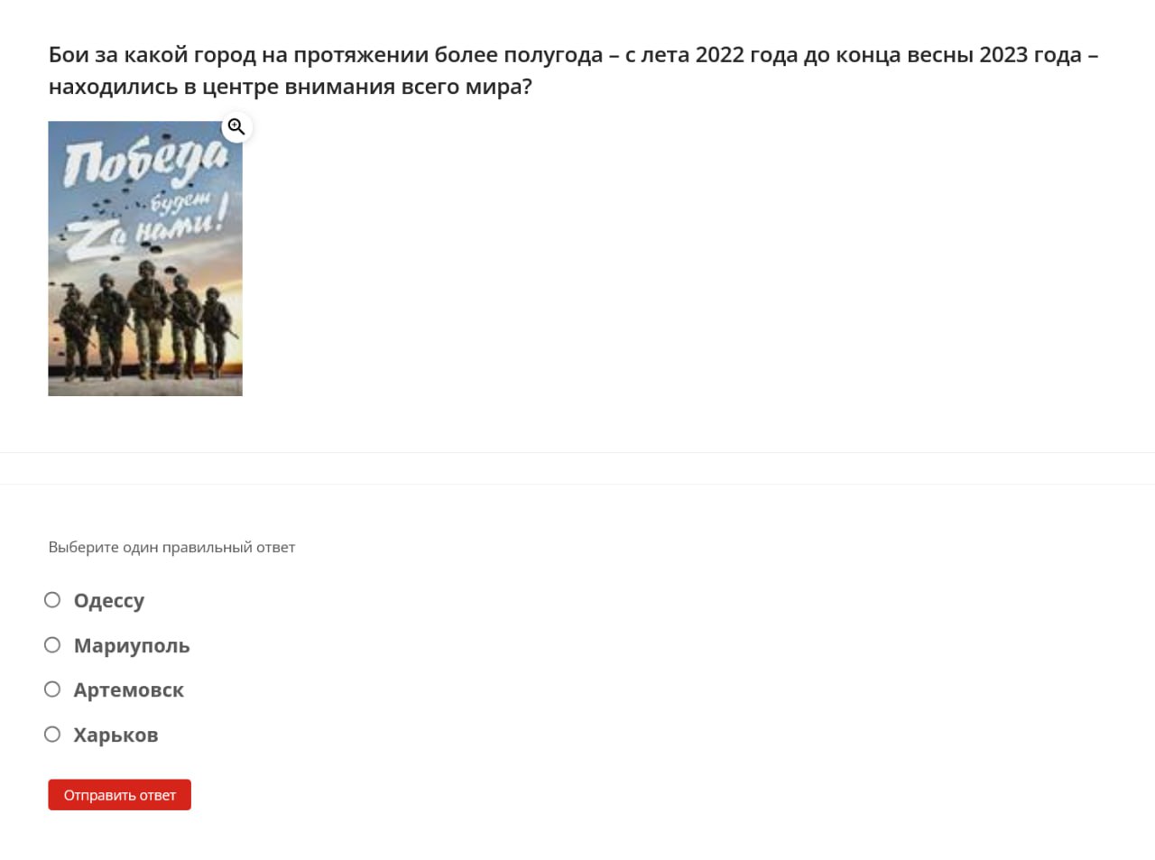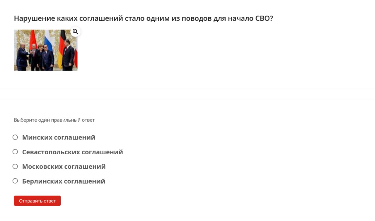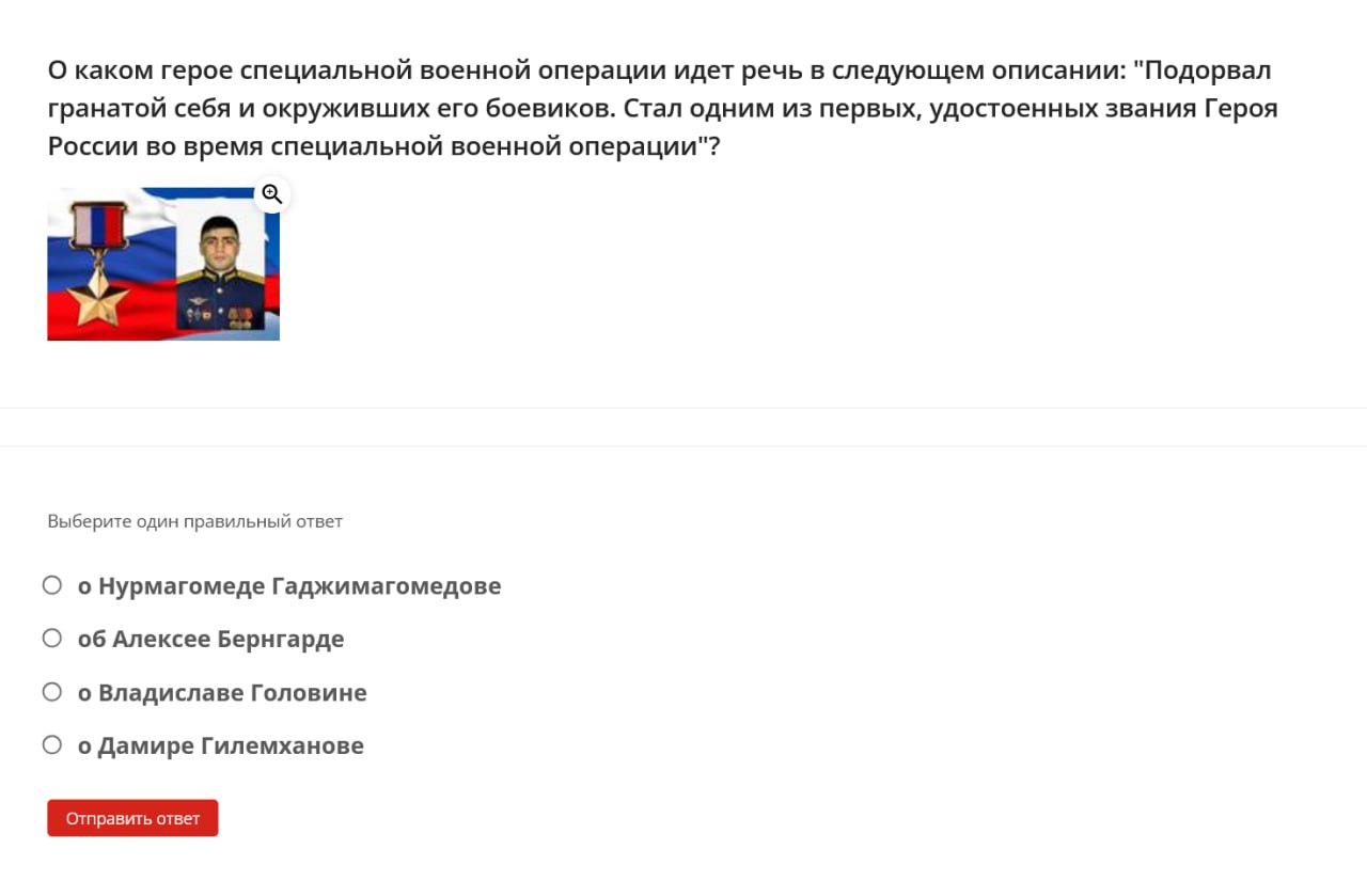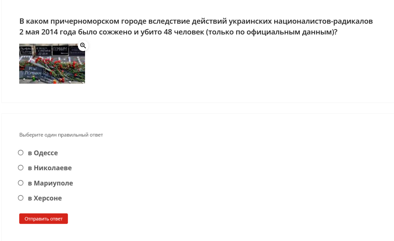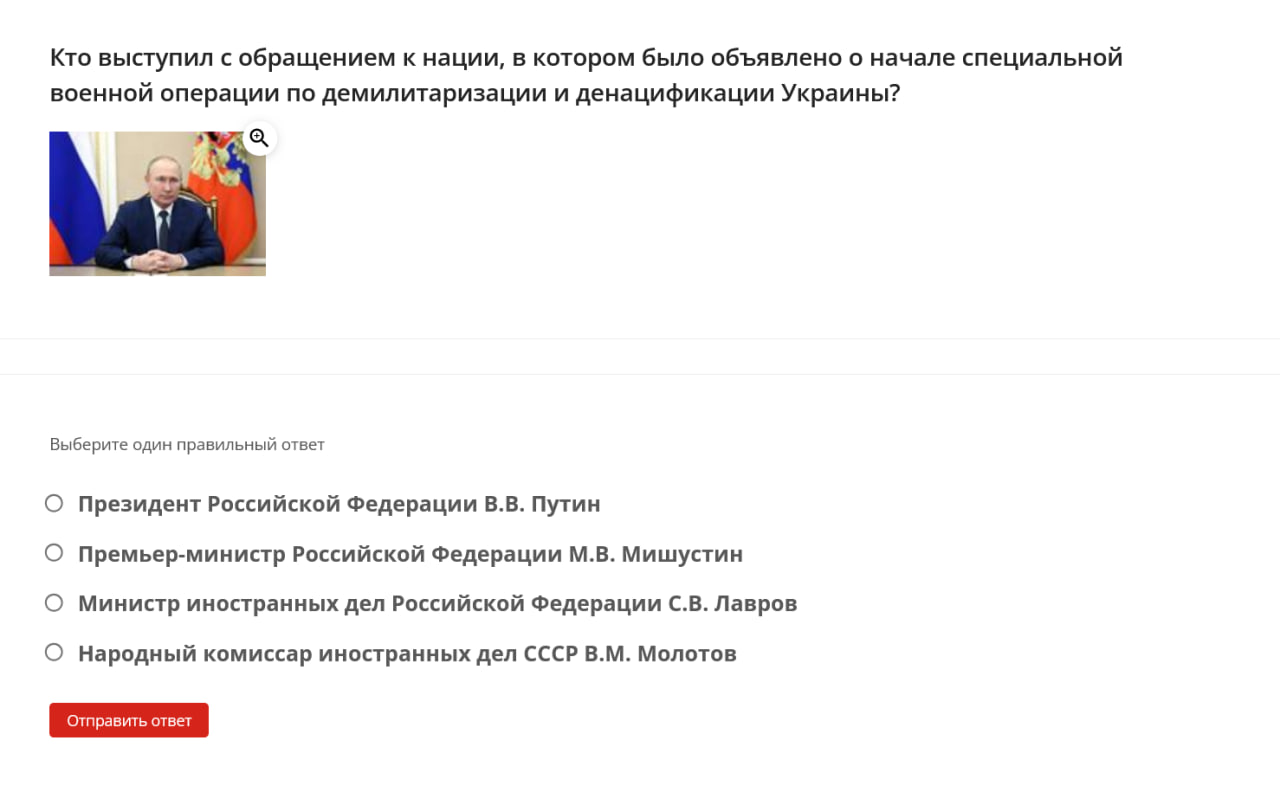 Here are some examples of questions students were asked: define the term “denazification,” name the date when the “special military operation” began, identify the Donetsk memorial dedicated to “children killed by neo-Nazi aggression against civilians,” name the coat of arms of one of the occupied territories of Ukraine.