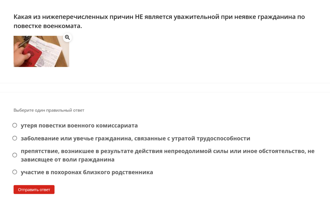 There is also a section devoted to military conscription, including questions such as: “What is the prison term for evading military service?”