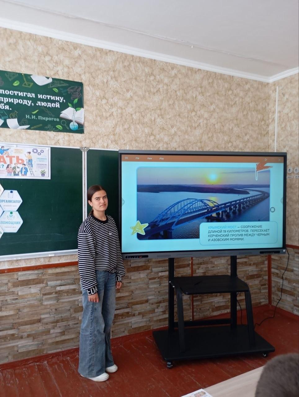 The lesson also presented examples of “teams that changed Russia” — from the first human spaceflight to the construction of the Crimean Bridge to occupied Ukrainian territory and volunteer movements. Students were told that “the result of even the most independent individual is always the product of collective work,” and that “all people are interconnected,” even when success appears personal.