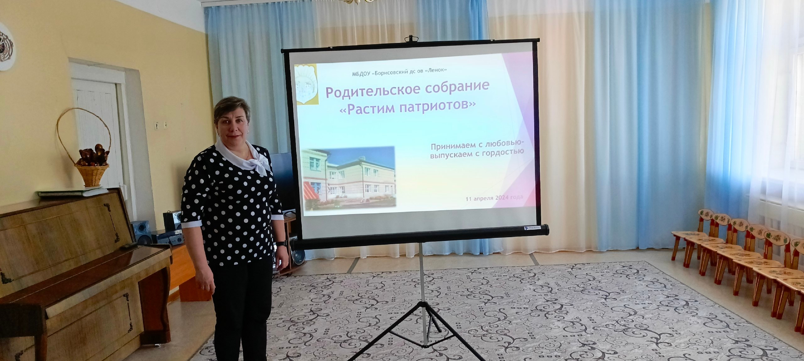 В детском саду № 32 на встречу с родителями пригласили психолога, которая провела беседу об «особенностях восприятия патриотических ценностей у малышей» и дала рекомендации, как формировать эти ценности дома.