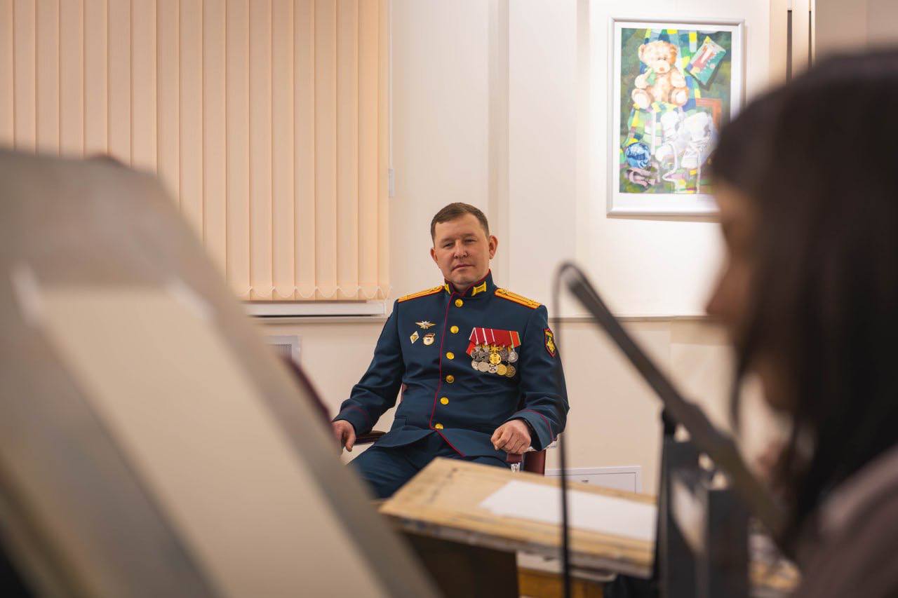 В Мурманске в рамках этого «всероссийского патриотического проекта» к ученикам детской художественной школы пригласили участника войны Романа Олешкина. Дети задавали ему вопросы и одновременно рисовали его портреты — один из рисунков отправят на всероссийскую выставку.