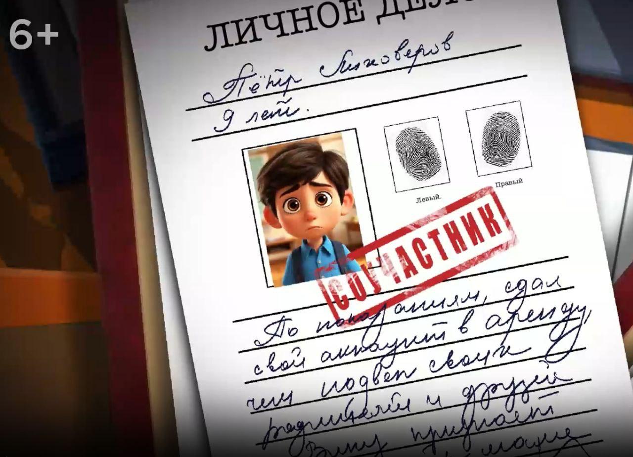 «Чем больше времени мы проводим в сети, тем выше риски. От банальной утечки данных до реальных сроков лишения свободы за участие в преступных схемах», — фраза учителя согласно сценарию.