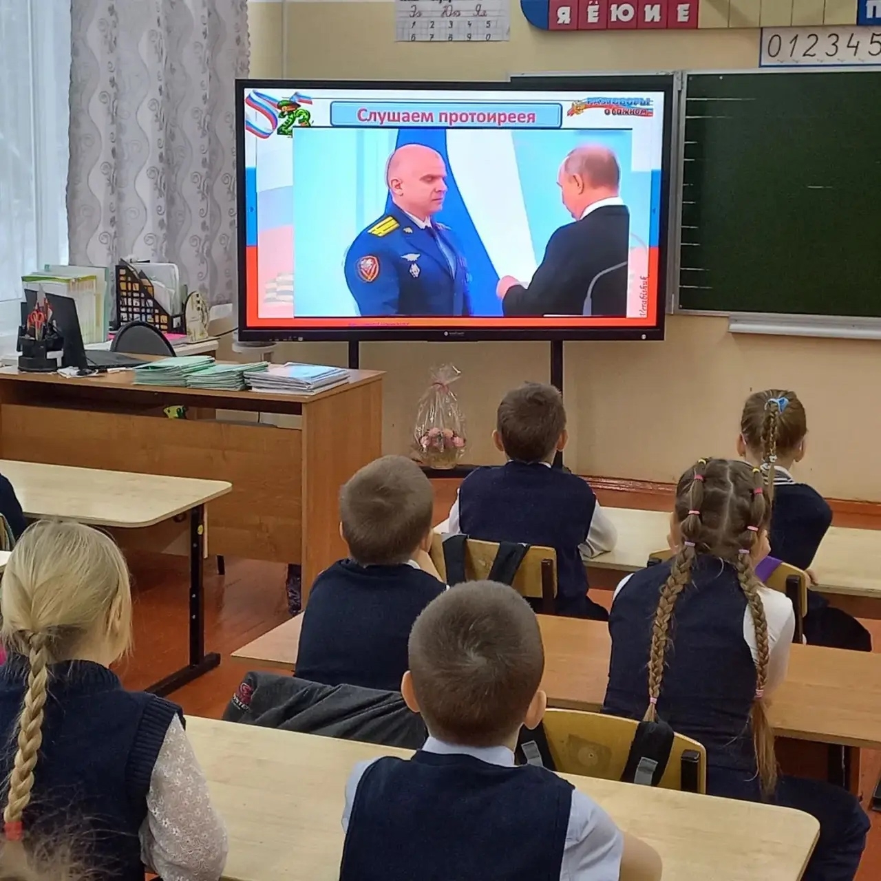 В российских школах прошли очередные «Разговоры о важном». Урок на тему «Герой из соседнего двора» был посвящён Дню защитника Отечества. Учителя должны были донести до школьников, что «настоящие герои — это те, кто встаёт на защиту своей Родины и совершает подвиг», а «чувство гордости и память о подвигах предков» гарантирует устойчивое развитие общества.